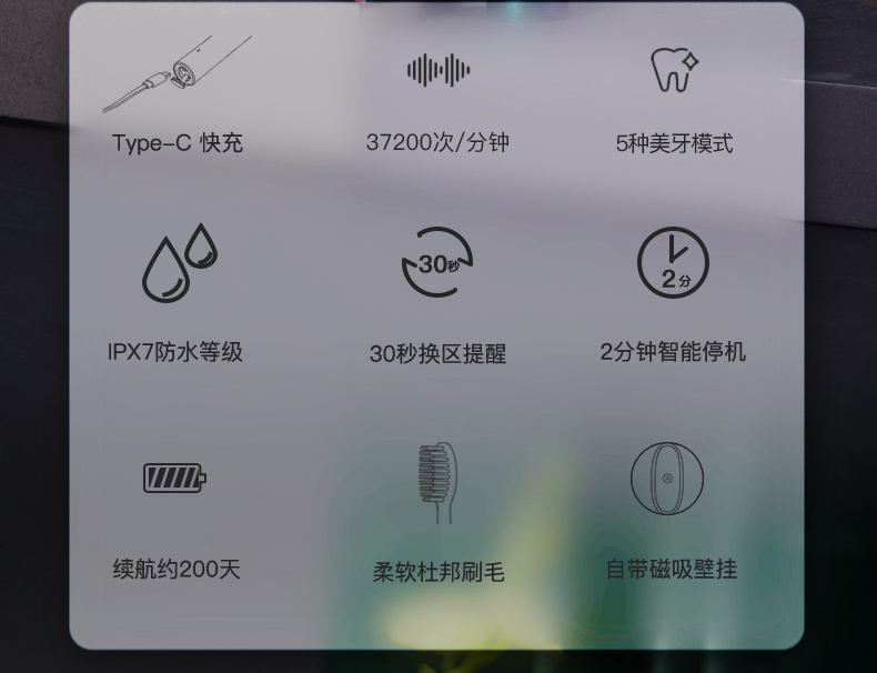 1、五大清洁模式智能设计,一键切换五档模式,让你享受不同洁齿功能