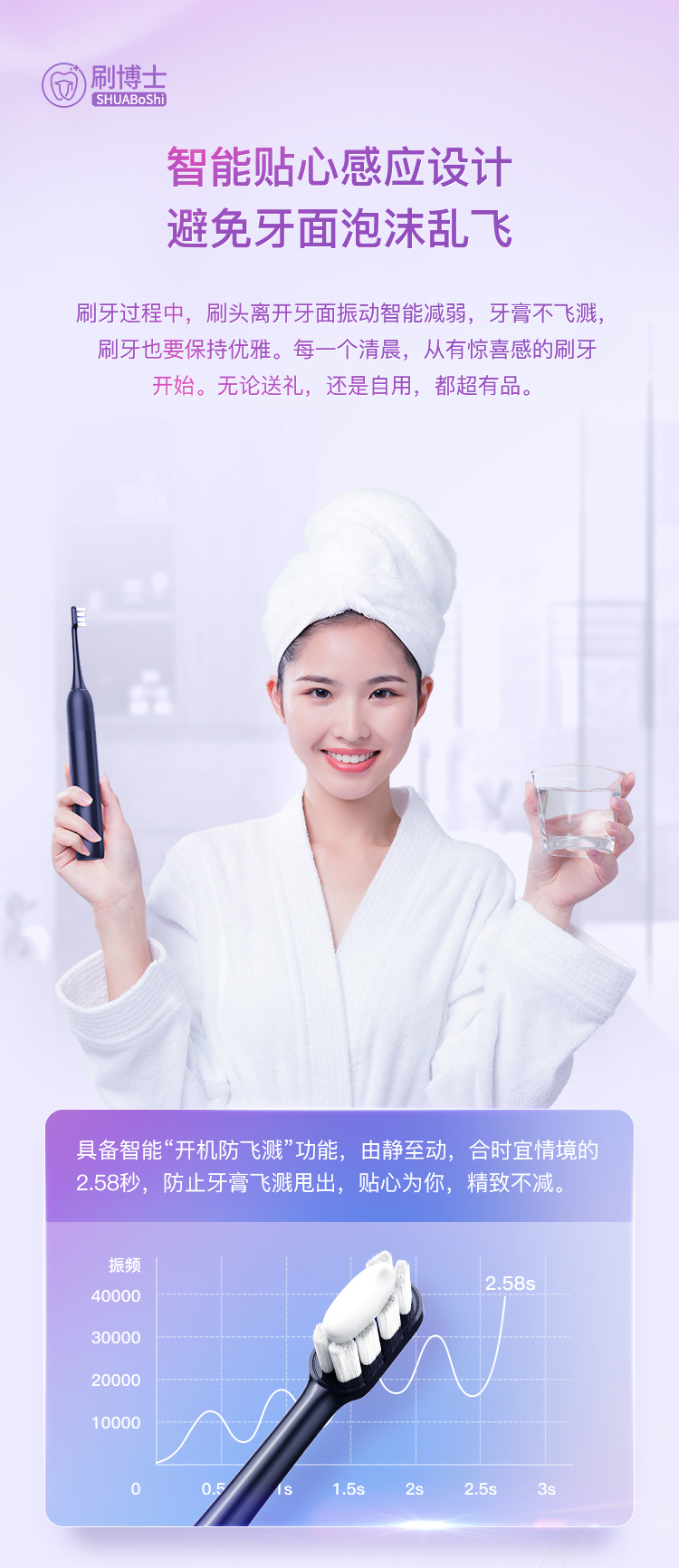 2、智能贴心感应设计,避免牙面泡沫飞溅