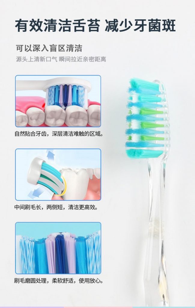 7、食品级杜邦刷毛(刚柔并进 高效清洁同时呵护牙龈)