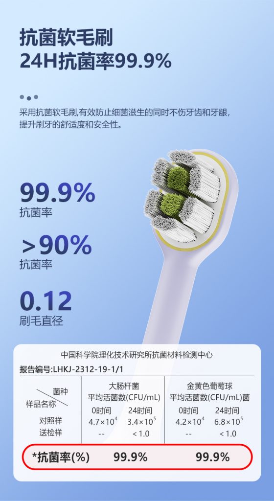 4、抗菌软毛刷,24H 抗菌率 99.9%,抑制细菌滋生
